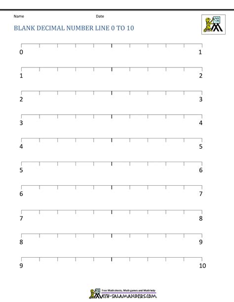 Download blank decimal number lines print Doc